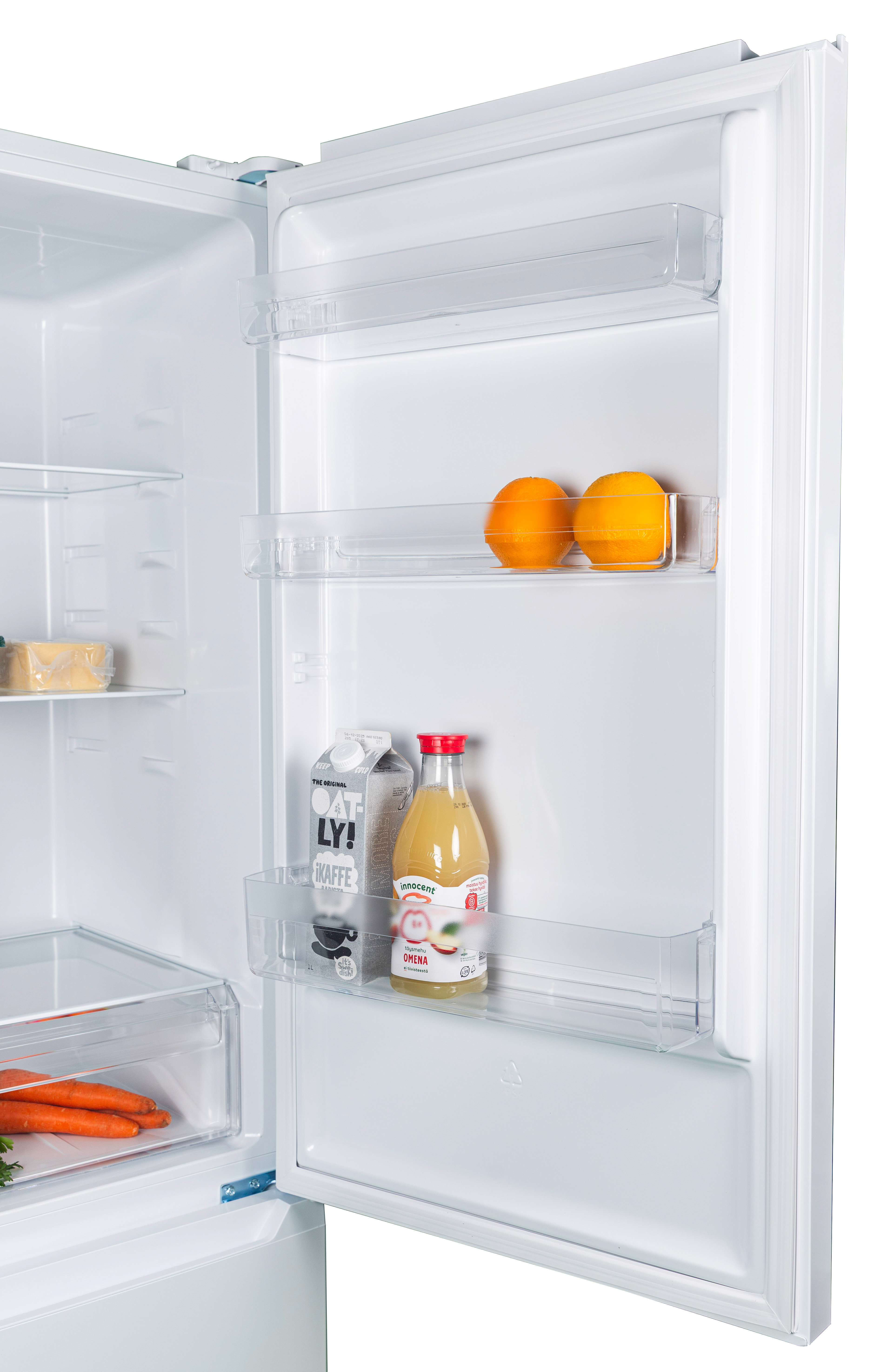 Tyylikäs NoFrost-jääkaappipakastin erillisellä kylmäkierrolla ja vaihdettavalla kätisyydellä.